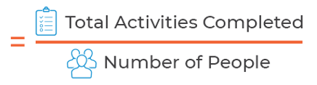 To calculate this metric, you take the same number of activities that you use for the Workload Unit Cost metric, which is your total activities completed, and then divide that by the number of people that need to participate in any manual steps in the automations as seen in the following equation: