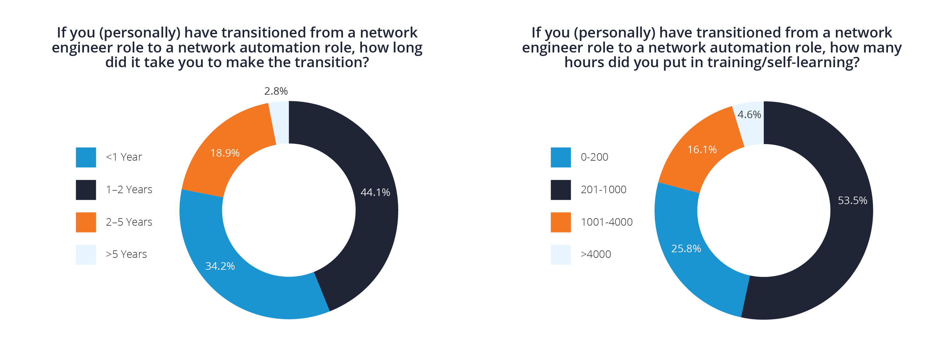 Getting started into Netops/DevOps is a challenge that is going to require a considerable amount of time and discipline. Based on the survey results, the primary tools for network automation revolve around Ansible, GIT and Python. Along with these tools, expect to also learn the Linux operating system and its various services, Python, package management, YAML, shell scripting and much more. Participants in the survey estimate that they have invested between 200 to 1000 hours for the transition into the NetOps/DevOps world, depending on previous skill sets and this investment of time will primarily occur outside of work. Networking demands are increasing, therefore the amount of tools needed to manage networks is increasing, and the backlog of network tasks is increasing. More and more network changes need to be completed with the same staff and in the same maintenance window schedule, causing more work than can actually be accomplished. In addition to this, expect to spend 6 months to 2 years to make the transition with these tools, with very little structured training. It will take a disciplined mind that is willing to work a full day and sacrifice their personal time to make this journey. Unfortunately, enterprises don’t seem to have a real focus on empowering their networking teams into automation, but it is clear that automation is needed immediately.