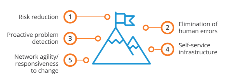 At the heart of network automation is understanding the purpose for these initiatives. What are the top goals teams are trying to achieve? Here are the top 5: