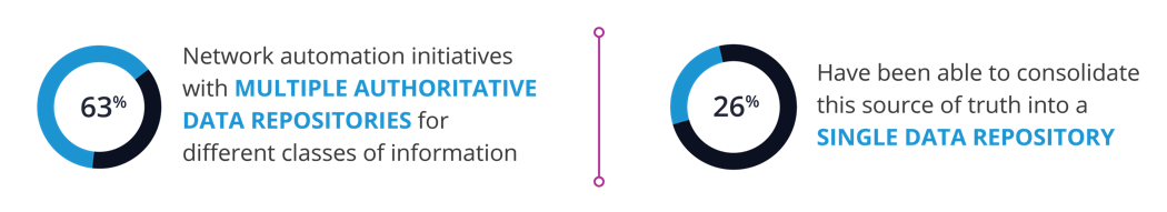 Only 26% have a single, authoritative repository, which underscores exactly how hard it is to build such a thing. There is such a diversity of data that it’s hard to normalize all of it into a single database. That’s why it’s imperative enterprises leverage the right automation platform that can integrate directly to the network source of truth.