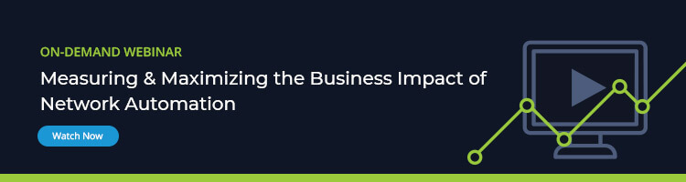 You can also catch up on my blog series detailing the four key metrics to measure the business impact of network automation as well as watch my webinar, “Measuring & Maximizing the Business Impact of Network Automation” on-demand.