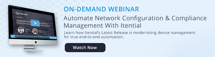 Itential 2019.1 modernizes the legacy Network Configuration and Change Management (NCCM) processes by simplifying and automating the management of network device configurations and compliance remediation, enabling customers to drastically reduce risks and improve efficiency. Itential’s low-code environment empowers Network Engineering and IT operations teams across the enterprise to automate use cases across complex, multi-vendor and multi-domain environments.