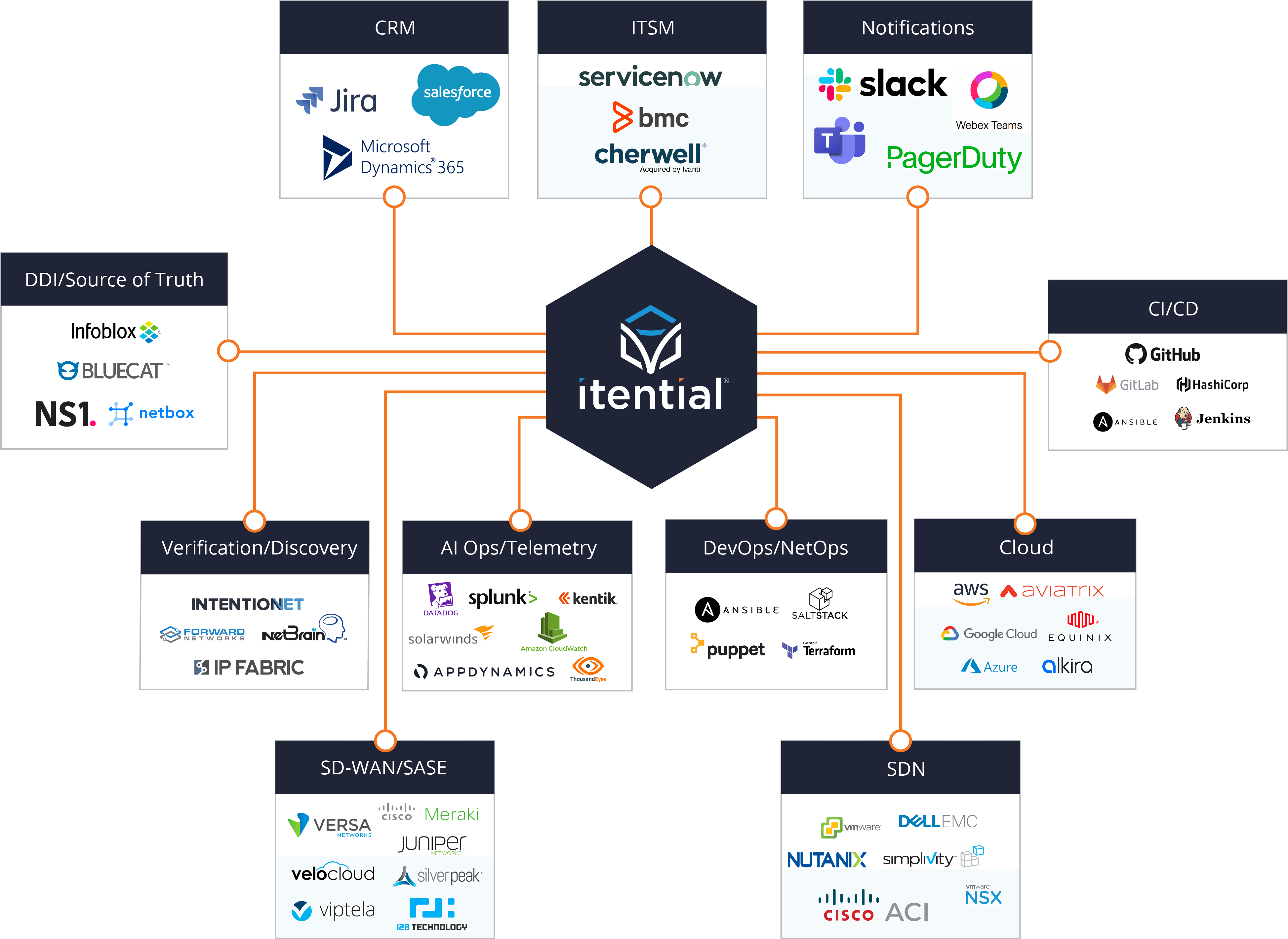 The Itential Automation Platform was purpose-built to help network teams connect to everything, so they automate everything. Teams can quickly create automations and easily integrate with all of their IT systems in order to save them time, so they can focus on building and maintaining their network. Our out-of-the-box integrations provides teams the flexibility needed to extend their configuration and compliance uses cases past the change itself.