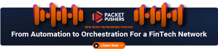 Want to dive into another success story? Listen to how Fiserv built scalable systems to evolve from automation to orchestration and deliver self-serve networking in this Packet Pushers podcast.