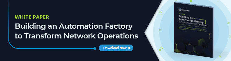 Hyperautomation is an effective approach to coordinating this transformation. According to Gartner, “hyperautomation refers to an effective combination of complementary sets of tools that can integrate functional and process silos to automate and augment business processes.” At Itential, we believe two of the most promising opportunities for hyperautomation will be gained through synergies between RPA and network automation and between ML and network automation.
