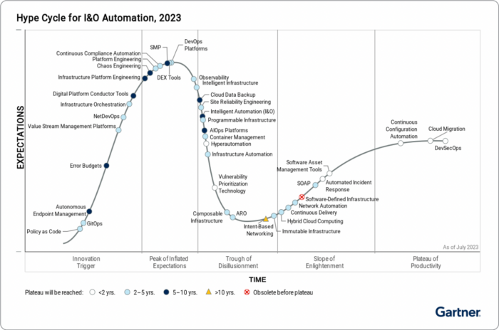 To see all of Gartner’s analysis and learn about each technology area in more depth, dive into the full Gartner® 2023 Hype Cycle Report for I&O Automation for free here.