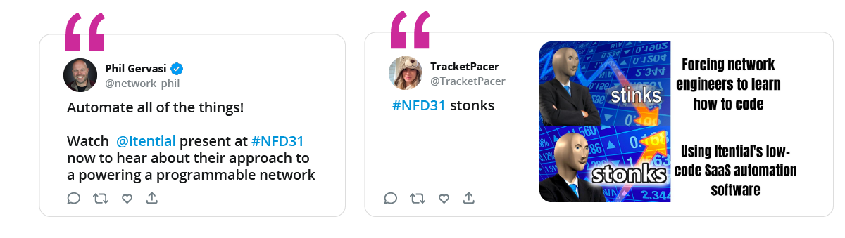 While we’re officially Networking Field Day veterans, our team is still just as excited to present at each new event. We love sharing what we’re seeing in the networking world, hearing from the delegates, and discussing how our customers are leveraging automation to scale their network management.