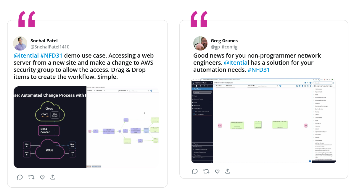 Check out full highlights of the day here, and keep an eye out for future Itential NFD presentations. If any of our demos sparked your interest and seem useful for making progress with automation, you can take our interactive platform tour and/or trial the platform for free today.