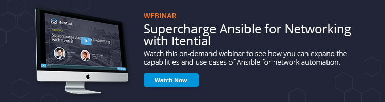 Many enterprises today are strategizing on how to implement network automation and reduce the time to complete typical network activities as they transition towards a software-defined “modern network.” This is why at Itential, we’re on a mission to provide integrated network automation solutions that are not only powerful, but easy to use and flexible enough to address networks of any type. While Ansible is a fantastic tool with a firm foundation in the IT automation space and expanding to include network automation capabilities, Itential has taken network automation with Ansible to the next level, making it even easier for network engineers to accelerate automation activities.