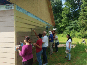 On the morning of Saturday, June 30th 2018, 15 Itentialites plus a couple of baby pronghorns (Itentialite kids), met in Lovejoy, GA for a day of volunteering at Habitat for Humanity that included painting the outside of newly built homes, clearing construction debris, and landscaping. We received a short orientation from Kiera, our wonderful Volunteer Coordinator from the Southern Crescent Habitat for Humanity branch, that provided some insight on what the non-profit organization does. We even got to meet the homeowners of the houses we were helping with.