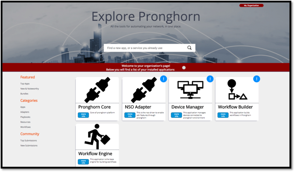 The Itential’s Network Automation Platform is quickly developing a large library of applications, adapters, and workflows that can be leveraged by any Pronghorn user. But due to the library’s rapid growth, they’re becoming harder and harder to know about! With the Itential App Store this team sought to: