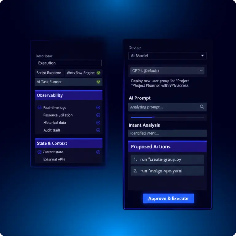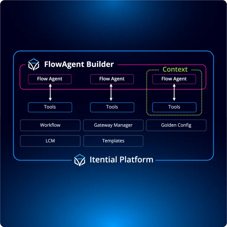 Agentic Operations is an operating model where AI agents interpret intent, reason over operational context, and plan infrastructure actions. Execution is performed through a governed, deterministic orchestration platform like Itential, which enforces policy, approvals, auditability, and verification across hybrid environments. Learn more.