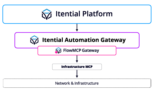 The Itential Automation Gateway centralizes and manages all automation assets, including scripts and playbooks, from a single interface. It provides the instrumentation layer for FlowAI, enabling integrations with controllers, APIs, scripts, cloud services, and network infrastructure, and extending deterministic execution to external MCP-based tools via FlowMCP Gateway.