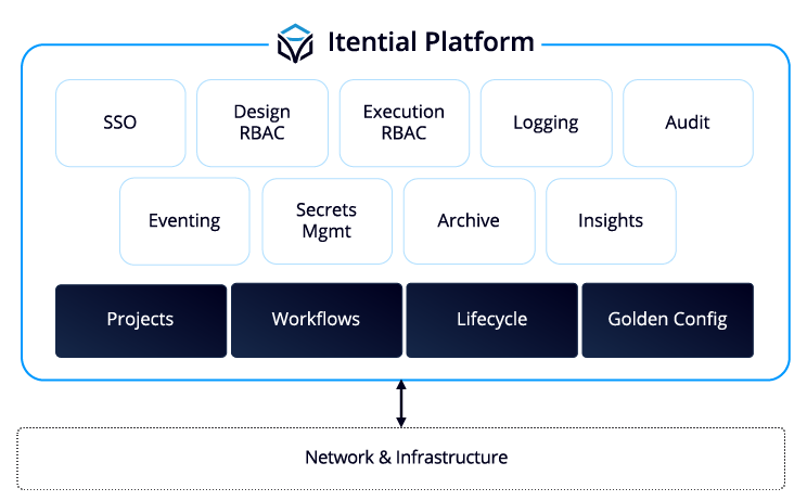 The Itential Platform offers deterministic orchestration and workflow automation, identity and access governance (SSO, RBAC), audit logging, real-time eventing and telemetry, integrations and adapters for infrastructure, and a secure runtime environment for agentic operations. These features ensure safe, scalable, and compliant AI-driven automation. Learn more.