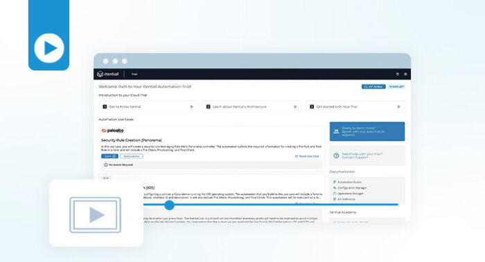 Demo Itential Trial Workspace: Getting Started In the Itential Trial Workspace, you have access to a series of introductory videos to the Itential Automation Platform and a set of guided use cases to build and run. This demo gives an overview of the Trial Workspace, including how to navigate the platform, how to select a