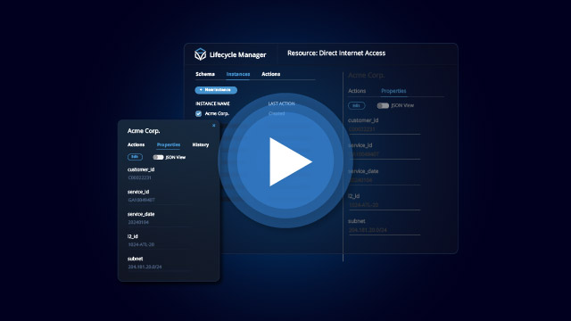 Demo How to Implement Stateful Orchestration with Itential’s Lifecycle Manager Network and infrastructure services can be complex, requiring resources configured across several domains and specific data associated with the service (e.g. customer data or application-specific data). Lifecycle Manager allows teams to track all relevant data for these services and leverage it in orchestrated processes to