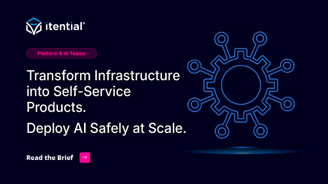 Transform Infrastructure into Self-Service Products. Deploy AI Safely at Scale. Platform & AI teams are building the next generation of infrastructure delivery – where environments are products, deployments are automated, and AI agents operate under governance. Itential provides the orchestration and control layer that Platform Engineers and AI Operations teams rely on to deliver Infrastructure